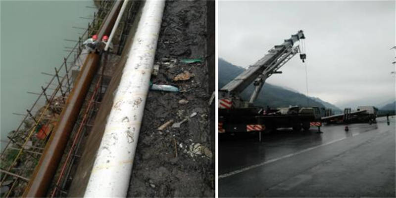 2018年11月13日,我公司接到該應急任務后,立即組織技術人員進行現場考察及施工放樣工作,并于11月18日安排施工人員及機械進場施工。通過科學安排,精心組織,我公司工程人員搶抓工期,克難攻堅,歷時40天,于2018年12月28日下午在雨夾雪中完成了最后一根鋼管的安裝。該工程總共完成波紋管埋置750米,鋼管安設350米。目前,黃泥崗主體工程任務已保質保量按期完成。