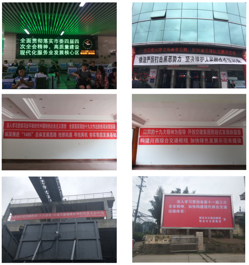 二是充分利用服務(wù)平臺(tái)優(yōu)勢(shì)擴(kuò)大宣傳。充分發(fā)揮蜀通公司車站、車輛等人流量大的優(yōu)勢(shì),利用出租車LED顯示屏、公交車顯示屏和車載終端、西門車站等各站電子屏、站外橫幅等宣傳載體宣傳市委四屆四次全會(huì),僅蜀通公司宣傳標(biāo)語(yǔ)就多達(dá)43條,滾動(dòng)播出上萬(wàn)次。