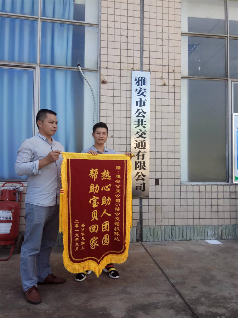 正是由于陳達細(xì)致耐心的服務(wù)和面對突發(fā)事件的沉穩(wěn)冷靜,避免了該起兒童走失事件發(fā)展成更大的悲劇,挽救 了一個家庭。9月20日,為了表達感激之情,男童的父親吳治華來到公交公司將一面寫有“熱心助人團圓,幫助寶貝回家”的錦旗送到了陳達手上。