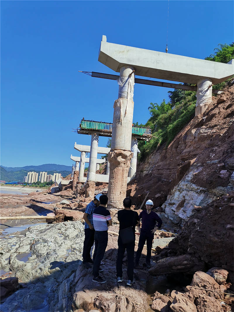 8月26日,項目公司邀請西南交通大學(xué)結(jié)構(gòu)專家到省道104線草壩至姚橋段、草壩青衣江大橋(茶地坎碼頭渡改橋)、多營青衣江大橋(搭溝漩碼頭渡改橋)等涉水工程項目進行現(xiàn)場踏勘,檢查橋梁墩臺、防護工程結(jié)構(gòu)等情況,并就相關(guān)項目安全狀況及結(jié)構(gòu)物的加固提出了專業(yè)意見。