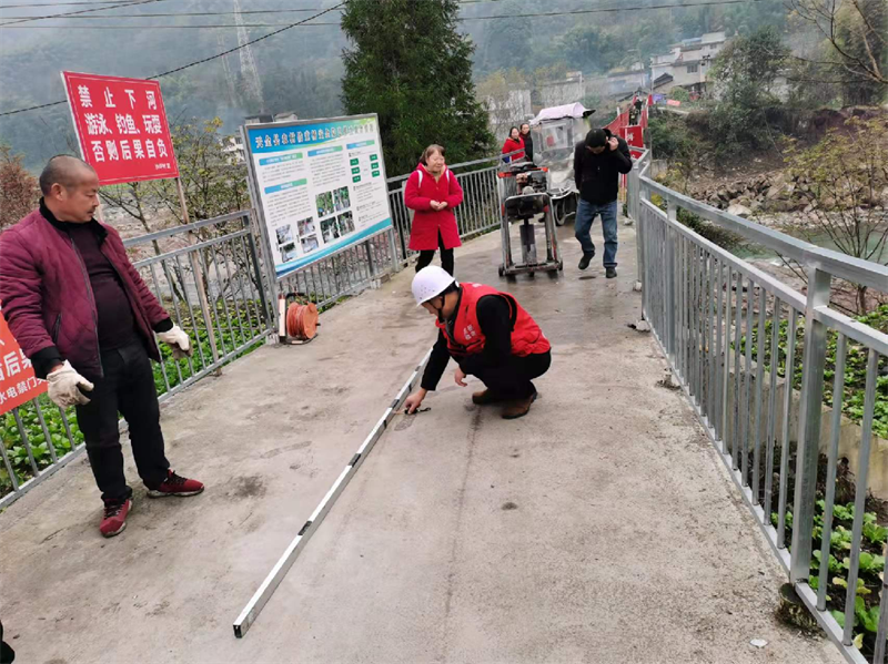 為深入推進(jìn)黨史學(xué)習(xí)教育“我為群眾辦實事”實踐活動,11月26日,交建集團(tuán)佳岳公司組織4名檢測人員對天全縣小河鄉(xiāng)境內(nèi)2條農(nóng)村公路,1座鐵索橋開展混凝土路面厚度、橋墩加固強(qiáng)度等檢測,全面把控道路質(zhì)量,提高群眾通行安全保障。