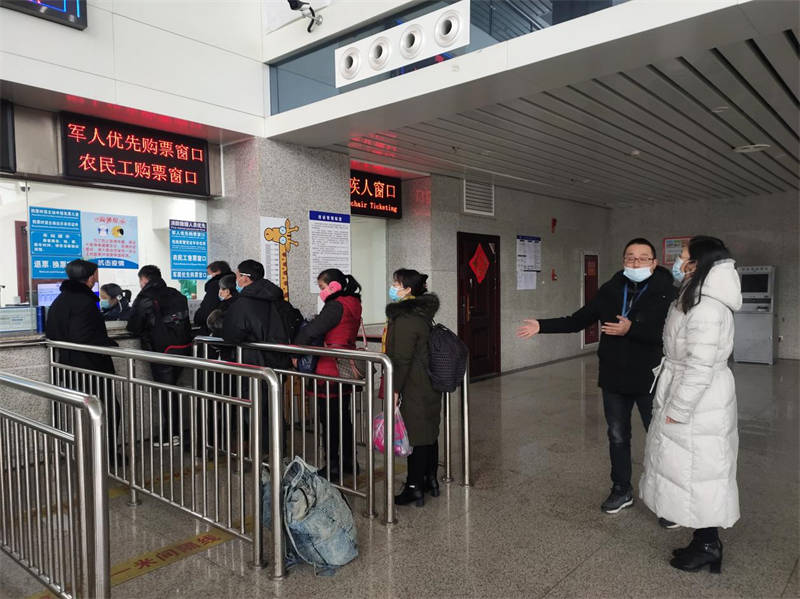 農(nóng)民工服務(wù)保障旅途暖冬服務(wù)行動(dòng)由雨城區(qū)人社局聯(lián)合汽車(chē)客運(yùn)站開(kāi)展。蜀通公司在汽車(chē)站進(jìn)站口懸掛橫幅,站內(nèi)LED顯示屏全天滾動(dòng)播放“歡迎農(nóng)民工朋友回家過(guò)年”標(biāo)語(yǔ);進(jìn)站口設(shè)置專(zhuān)為農(nóng)民工朋友提供熱開(kāi)水、方便面、礦泉水和口罩等防疫物質(zhì)及宣傳資料的志愿者服務(wù)點(diǎn);設(shè)置農(nóng)民工購(gòu)票窗口并安排“小紅帽”工作人員引導(dǎo)和幫助農(nóng)民工朋友購(gòu)票乘車(chē);專(zhuān)設(shè)候車(chē)廳農(nóng)民工軟座和檢票口通道,方便農(nóng)民工朋友休息和乘車(chē)。