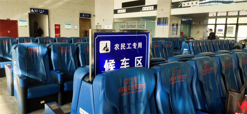 三是設置專門候車區(qū)。專設農民工候車區(qū),配備軟座,方便農民工朋友更好的候車休息,檢票口開通“刷臉驗票”及“人工通道”,安排工作人員引導農民工朋友方便、快捷地乘坐客車。