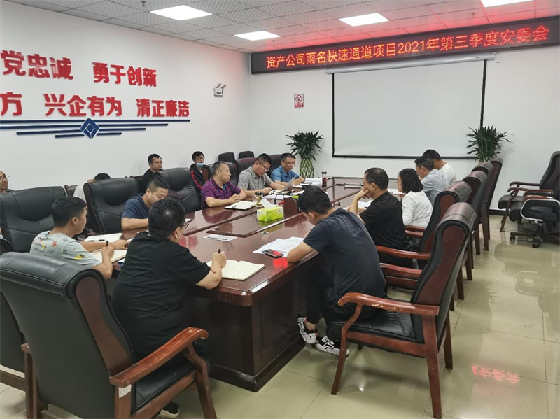 9月9日,資產(chǎn)公司召開雨名快速通道項目2021年第三季度安委會,對雨名快速通道項目第三季度安全工作情況進行總結(jié),對四季度安全工作進行安排布置。資產(chǎn)公司經(jīng)營班子成員及部門負責人,項目總監(jiān)辦總監(jiān)理工程師、安全監(jiān)理工程師、各施工項目部項目及安全負責人參加會議。
