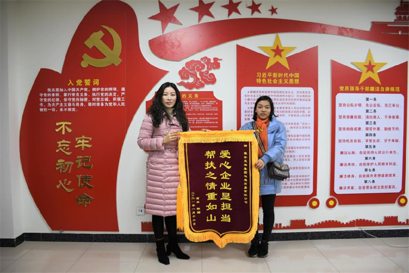 “感謝運(yùn)通公司一直以來(lái)對(duì)我和家人的關(guān)懷、照顧,讓我感受到了社會(huì)的溫暖,讓我們的生活充滿了希望!”1月18日,家住雨城區(qū)雅州大道的黃菲女士在青江街道石馬社區(qū)工作人員的陪伴下來(lái)到運(yùn)通公司,將一面印有“愛心企業(yè)顯擔(dān)當(dāng) 幫扶之情重如山”字樣的錦旗送到運(yùn)通公司。這是運(yùn)通公司2022年收到的第一份特殊“禮物”。