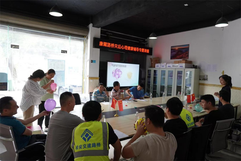 “6.1”蘆山地震發(fā)生后,路橋公司寶興項目部員工親身經歷了全過程,第一時間組織人力、物力參加人員道路搶通保通和生產自救,突發(fā)地震災害對職工造成不同程度的心理沖擊。活動中,左老師與員工們歡聚一堂,以小游戲與員工互動調整大家心理狀態(tài),圍繞員工心理健康常識、常見心理困擾及應對策略和如何緩解工作壓力、控制個人情緒、提高心理健康水平等內容,評估員工心理健康狀況,剖析員工情緒現(xiàn)狀及負面情緒產生的原因,幫助梳理解決方案。