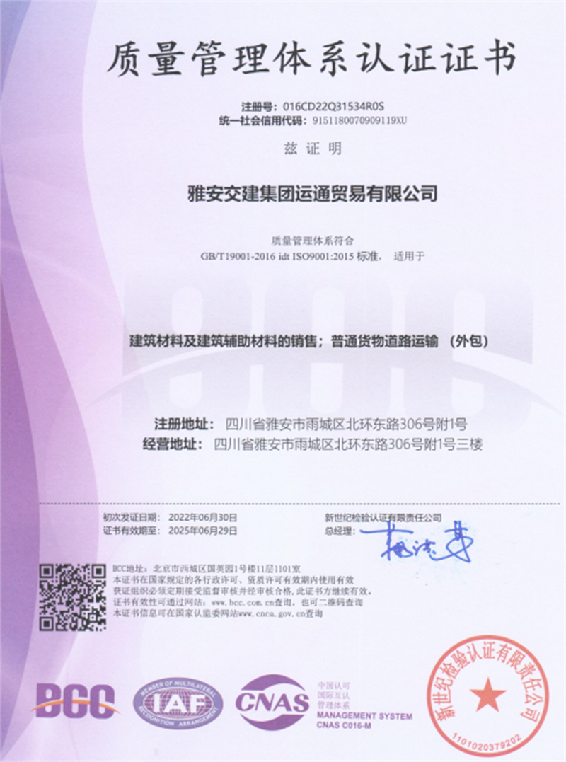 近日,經(jīng)專業(yè)認(rèn)證機(jī)構(gòu)嚴(yán)格審核,運(yùn)通公司順利通過GB/T19001-2016 idt ISO9001:2015質(zhì)量管理體系標(biāo)準(zhǔn)認(rèn)證。