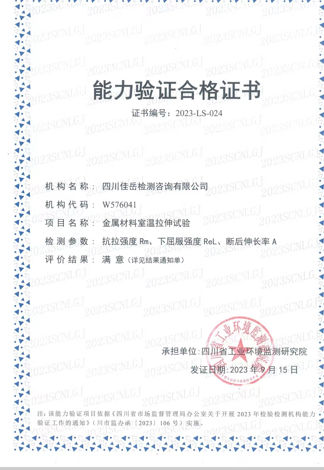 近日,四川省市場(chǎng)監(jiān)督管理局公布2023年能力驗(yàn)證結(jié)果,雅安交建集團(tuán)所屬四川佳岳檢測(cè)咨詢(xún)公司參加的保溫材料導(dǎo)熱系數(shù)檢測(cè)、室內(nèi)環(huán)境污染物甲醛檢測(cè)、水泥物理性能檢測(cè)、金屬材料室溫拉伸試驗(yàn)等5項(xiàng)能力驗(yàn)證,評(píng)價(jià)結(jié)果均為“滿(mǎn)意”。