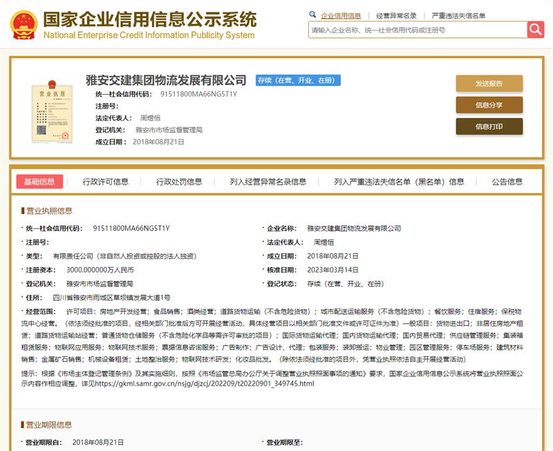 3月14日,經(jīng)市場(chǎng)監(jiān)督管理部門核定,雅安交建集團(tuán)無(wú)水港物流有限責(zé)任公司正式變更為雅安交建集團(tuán)物流發(fā)展有限公司,標(biāo)志著公司改革發(fā)展邁出新的步伐。