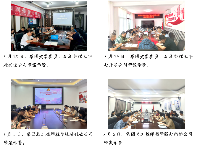近期,雅安交建集團(tuán)組織開(kāi)展警示教育活動(dòng),集團(tuán)領(lǐng)導(dǎo)班子成員深入分管聯(lián)系的子公司“帶案示警”,通過(guò)專題學(xué)習(xí)今年駐市交建集團(tuán)紀(jì)檢監(jiān)察組查處的六起典型案例通報(bào)、剖析違紀(jì)違法案例等形式,推動(dòng)紀(jì)法教育、廉潔從業(yè)走深走實(shí),引導(dǎo)黨員干部職工養(yǎng)成在受監(jiān)督和約束的環(huán)境中工作生活的習(xí)慣,做到既勤又廉、遵規(guī)守紀(jì)依法,讓“心有所畏、行有所止”成為日常自覺(jué)。