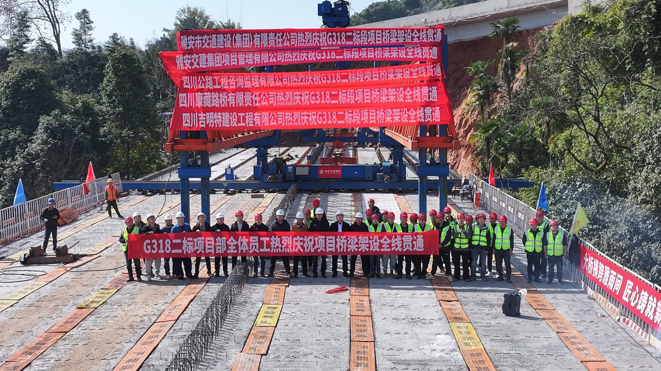 2月11日,隨著白果塘大橋最后一片T梁精準(zhǔn)架設(shè)就位,國(guó)道318名山區(qū)黑竹(成都界)至雨城區(qū)多營(yíng)段改建工程二標(biāo)段實(shí)現(xiàn)全線貫通。