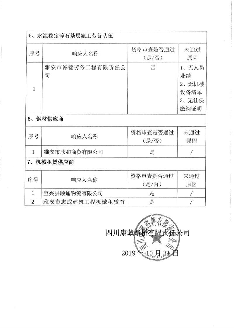 四川康藏路橋有限責任公司企業(yè)入庫比選(補錄)結(jié)果公示