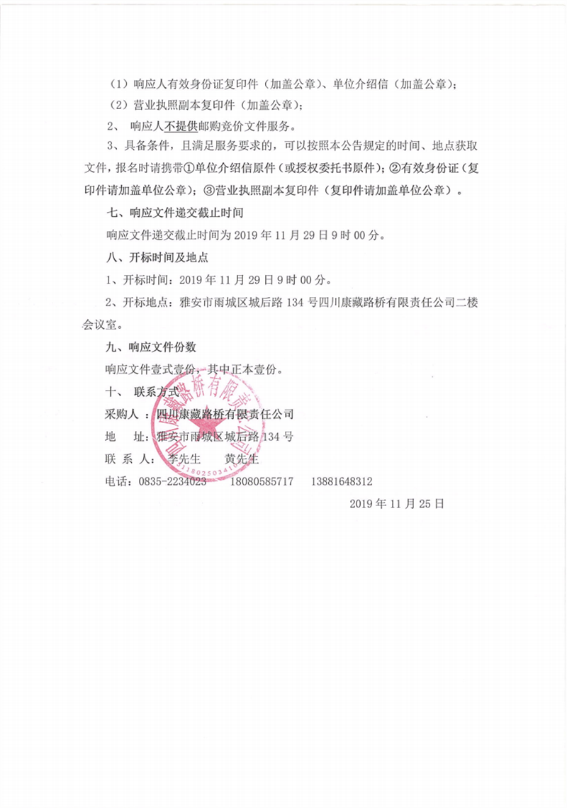 四川康藏路橋有限責任公司蘆山縣龍門、大川等8個鄉(xiāng)鎮(zhèn)基礎(chǔ)設(shè)施恢復提升工程項目施工勞務競價公告