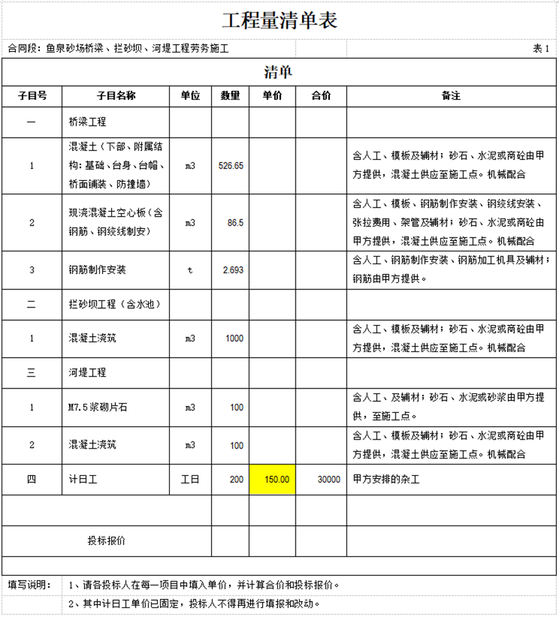 魚泉砂場(chǎng)橋梁、攔砂壩、河堤工程勞務(wù)施工招標(biāo)公告