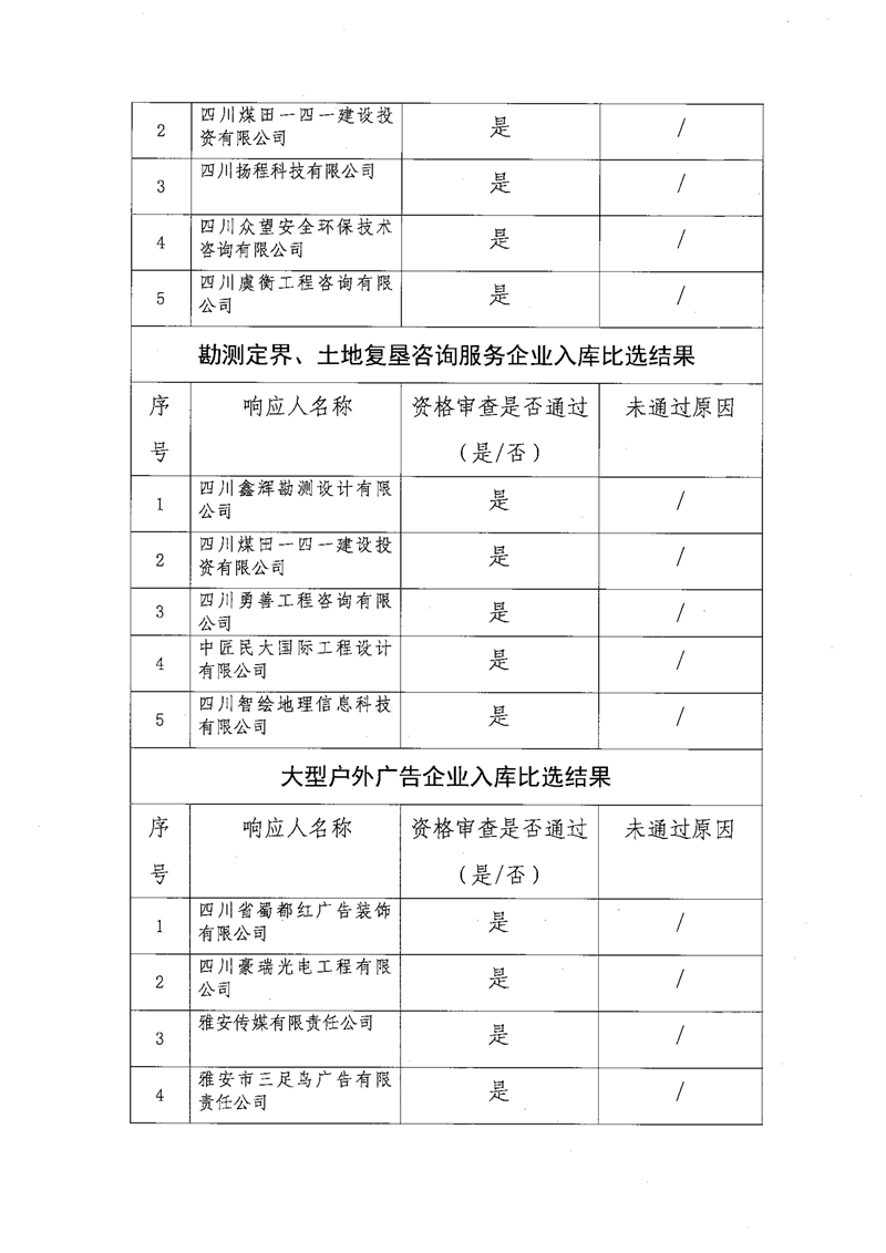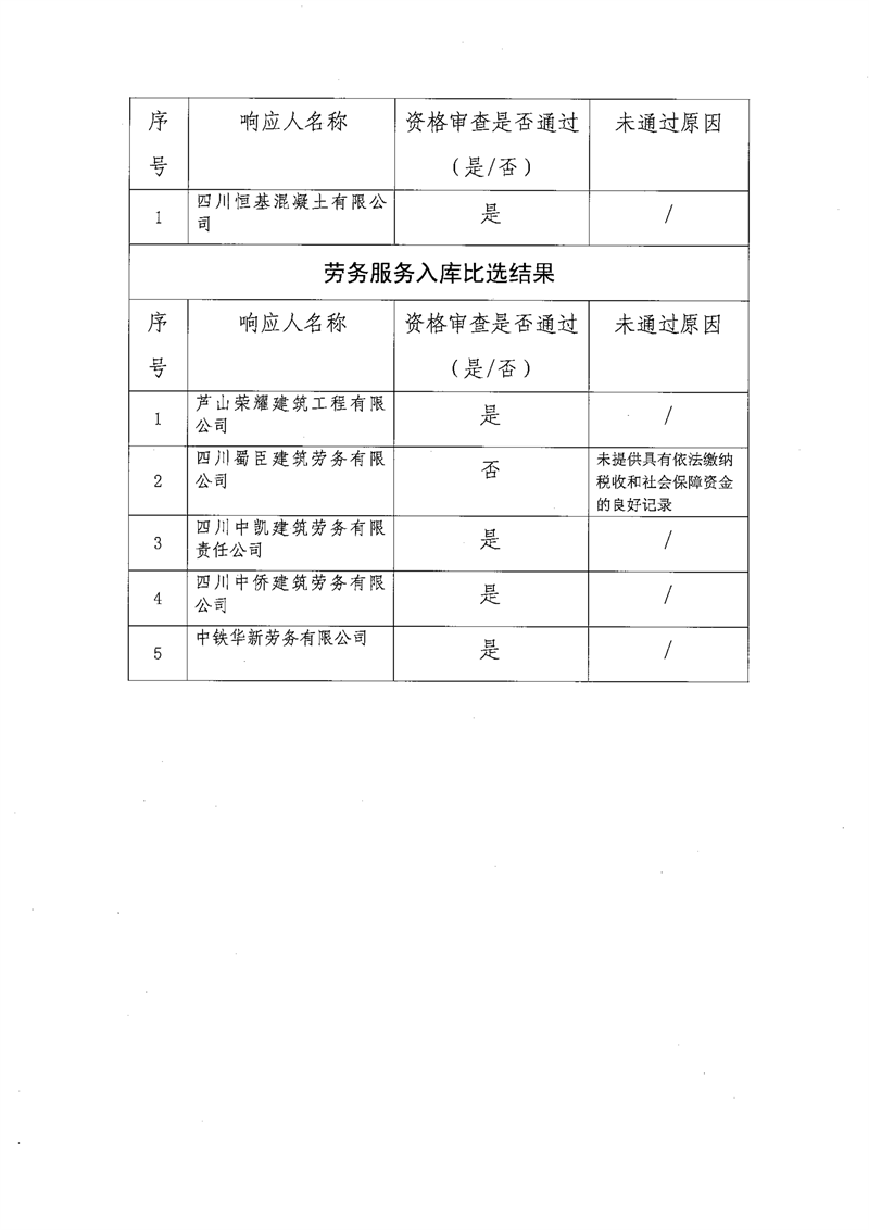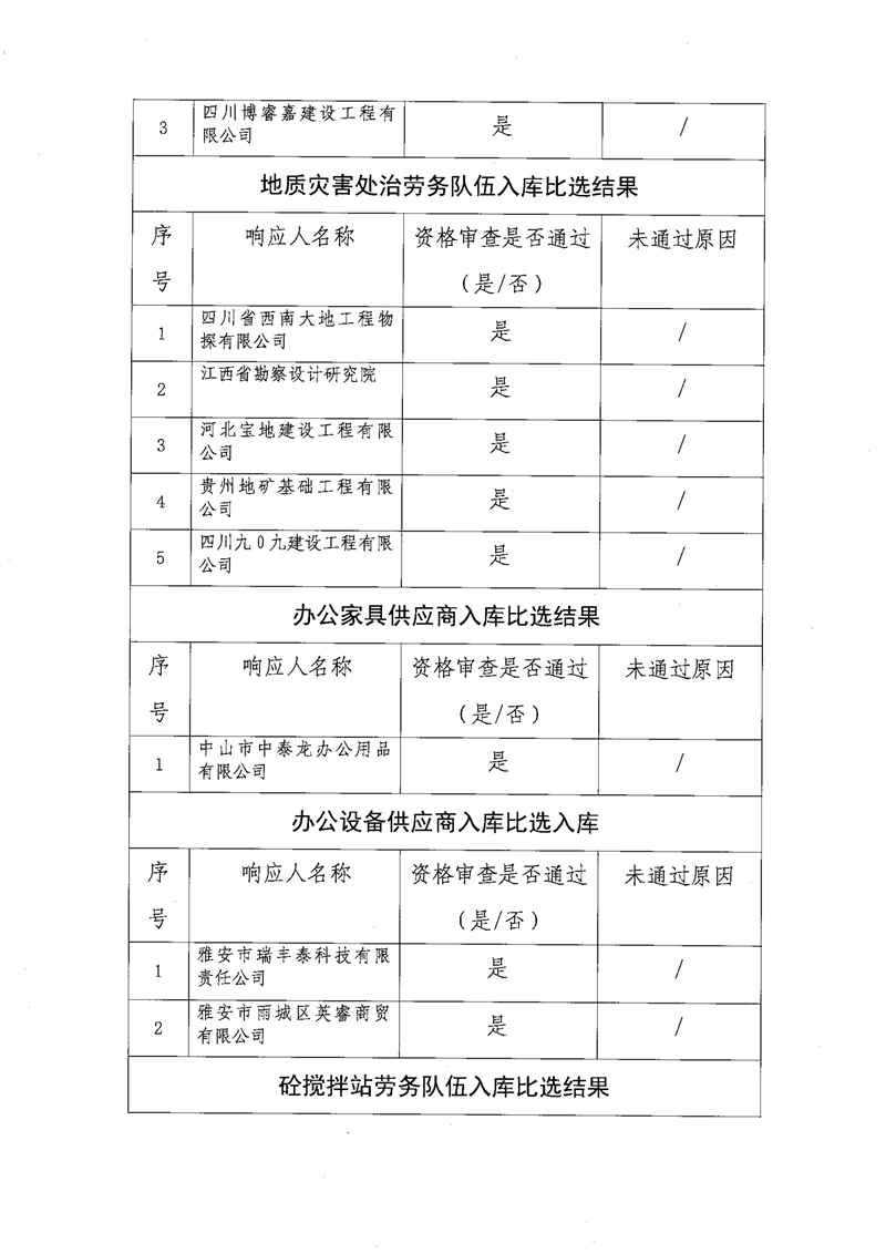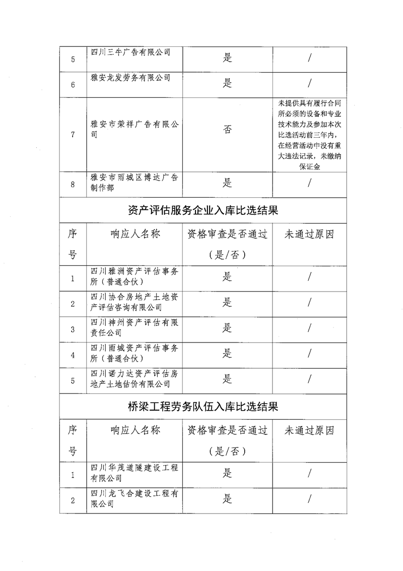 雅安交通建設(shè)(集團(tuán))有限責(zé)任公司比選入庫(kù)補(bǔ)錄結(jié)果公示
