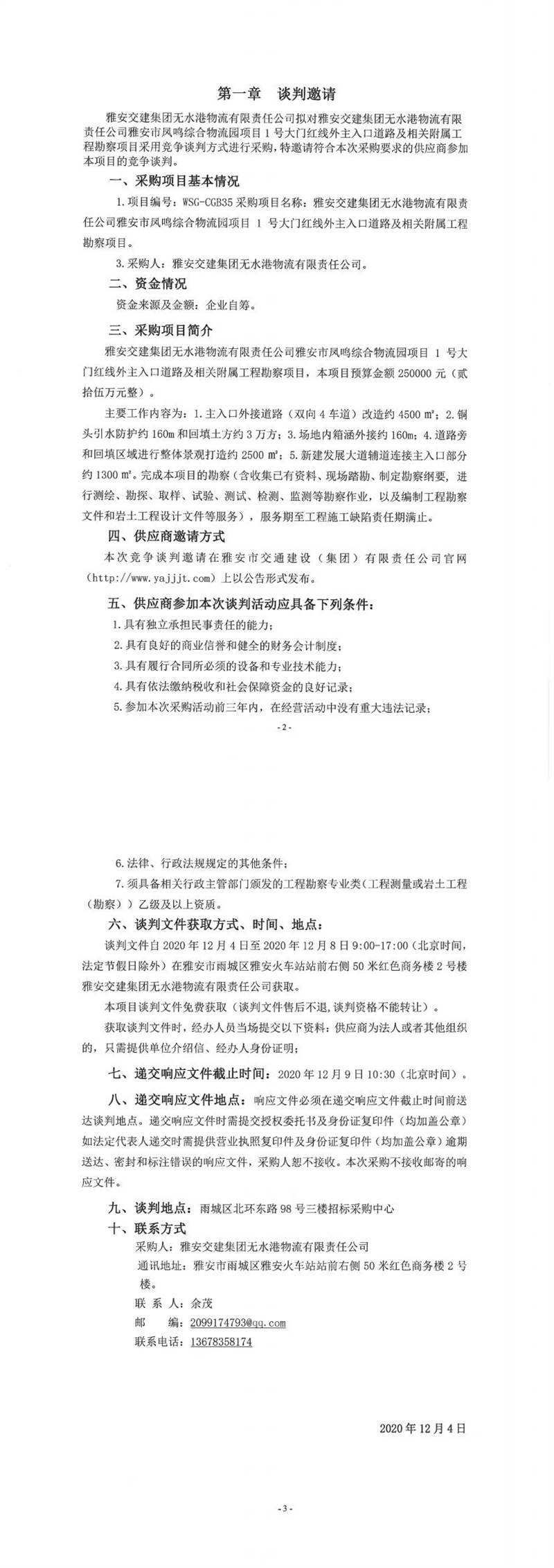雅安交建集團(tuán)無水港物流有限責(zé)任公司雅安市鳳鳴綜合物流園項(xiàng)目1號(hào)大門紅線外主入口道路及相關(guān)附屬工程勘察項(xiàng)目談判公告