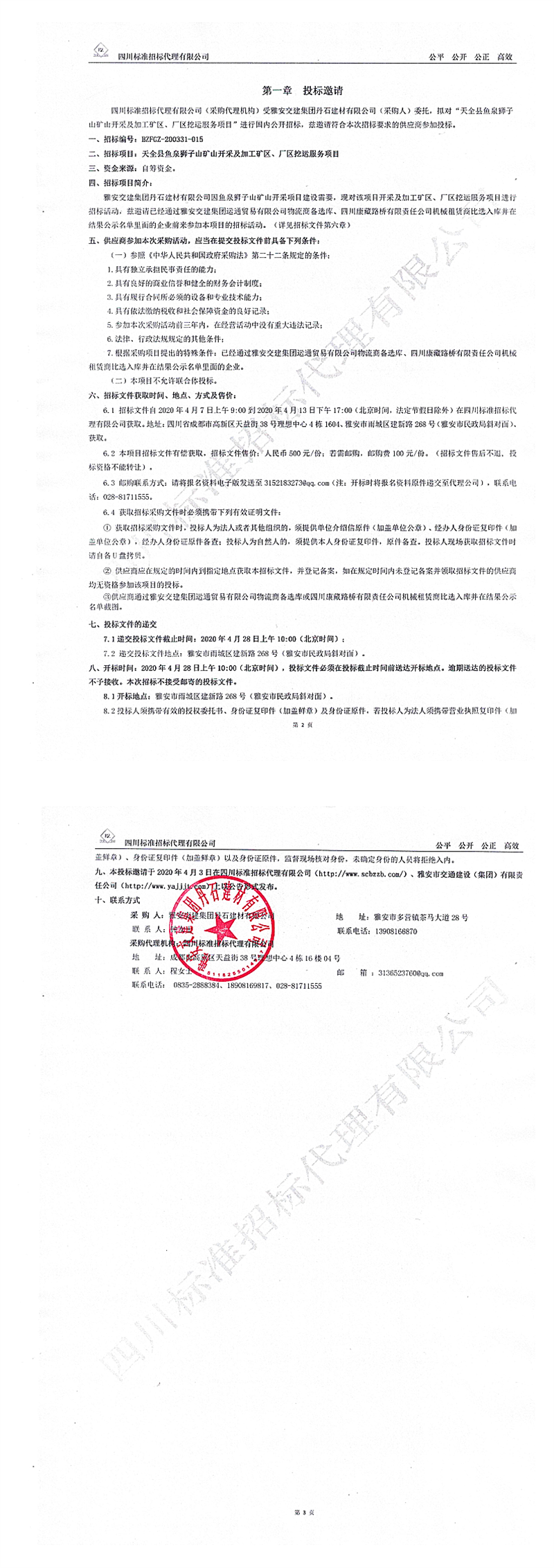 雅安交建集團(tuán)丹石建材有限公司天全縣魚(yú)泉獅子山礦山開(kāi)采及加工礦區(qū)、廠(chǎng)區(qū)挖運(yùn)服務(wù)項(xiàng)目招標(biāo)公告