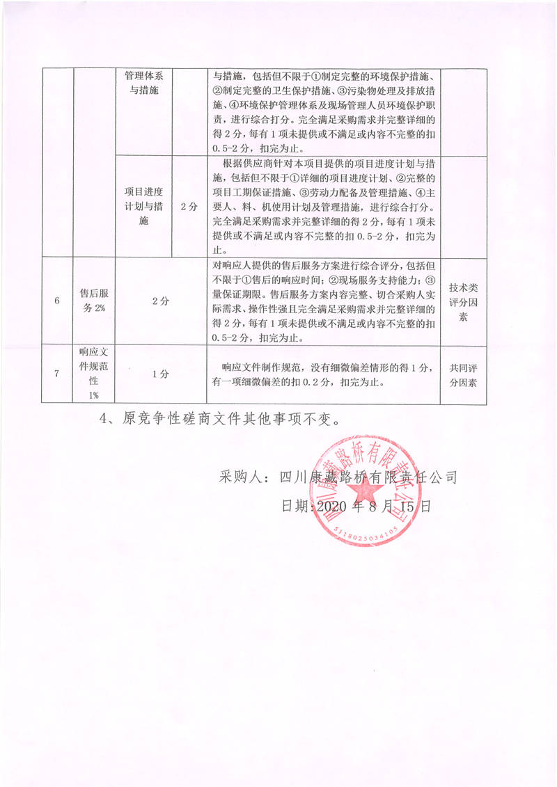 四川康藏路橋有限責(zé)任公司國(guó)道318線天全境內(nèi)公路養(yǎng)護(hù)工程公路安全設(shè)施施工競(jìng)爭(zhēng)性磋商文件更正公告01號(hào)