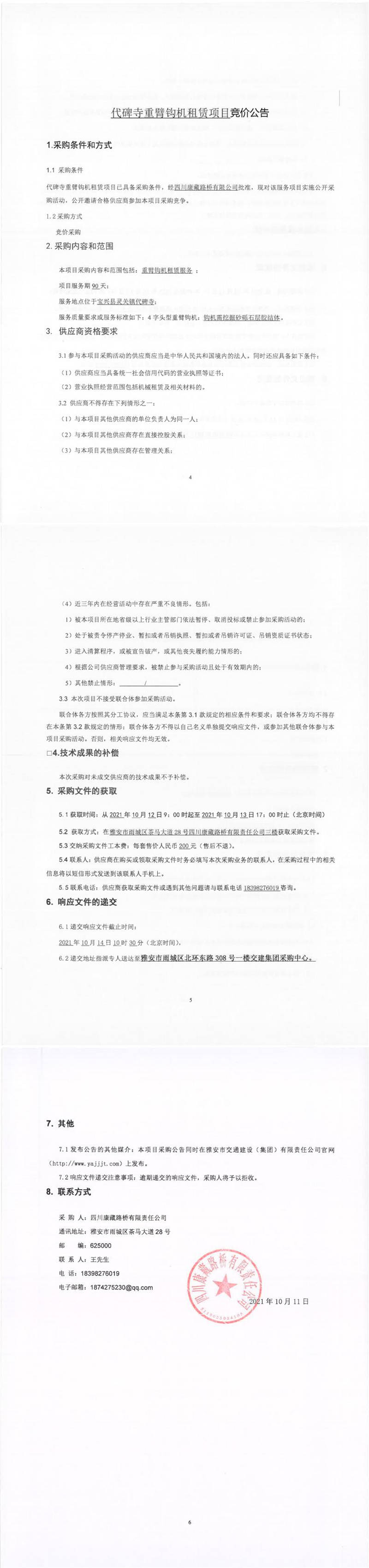 四川康藏路橋有限責(zé)任公司代碑寺重臂鉤機(jī)租賃項目競價公告