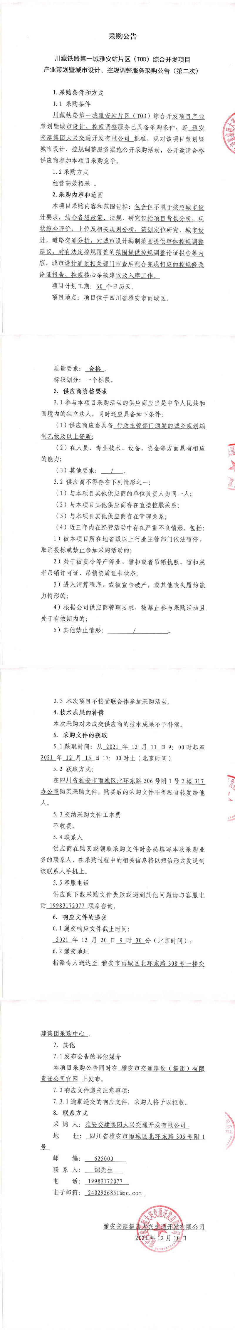 雅安交建集團(tuán)大興交通開發(fā)有限公司川藏鐵路第一城雅安站片區(qū)(TOD)綜合開發(fā)項(xiàng)目產(chǎn)業(yè)策劃暨城市設(shè)計(jì)、控規(guī)調(diào)整服務(wù)采購(gòu)公告(第二次)