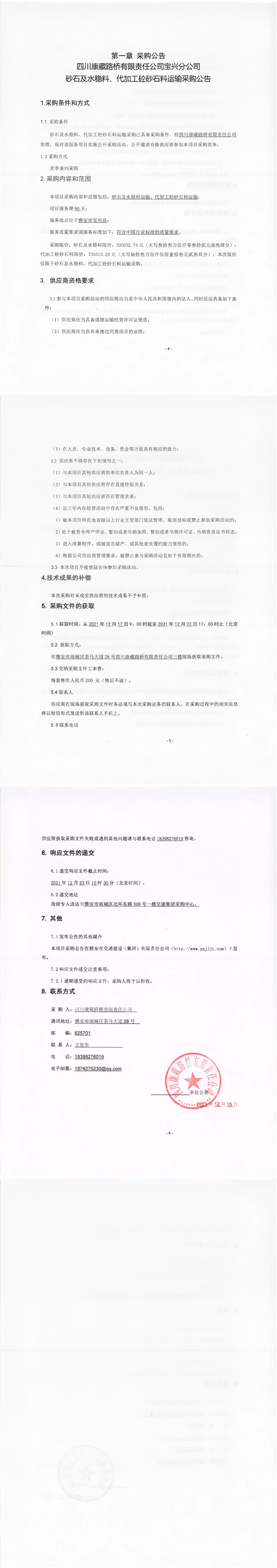 四川康藏路橋有限責(zé)任公司寶興分公司砂石及水穩(wěn)料、代加工砼砂石料運輸采購公告