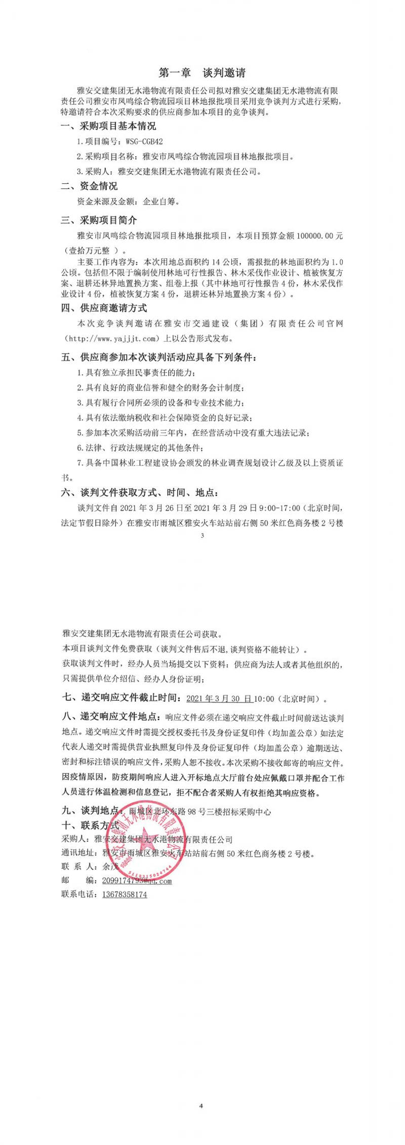 雅安交建集團(tuán)無水港物流有限責(zé)任公司雅安市鳳鳴綜合物流園項目林地報批項目競爭談判公告