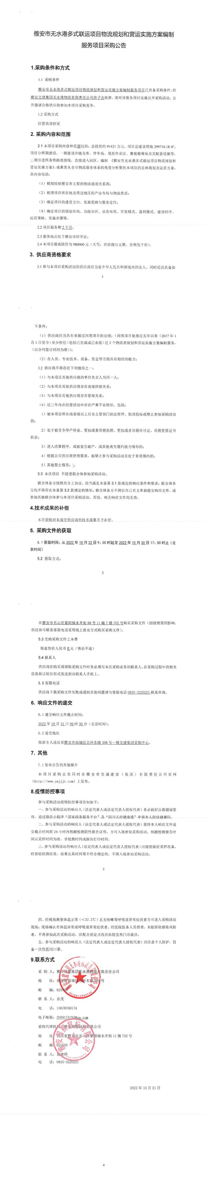 雅安交建集團(tuán)無水港物流有限責(zé)任公司雅安市無水港多式聯(lián)運項目物流規(guī)劃和營運實施方案編制服務(wù)項目采購公告