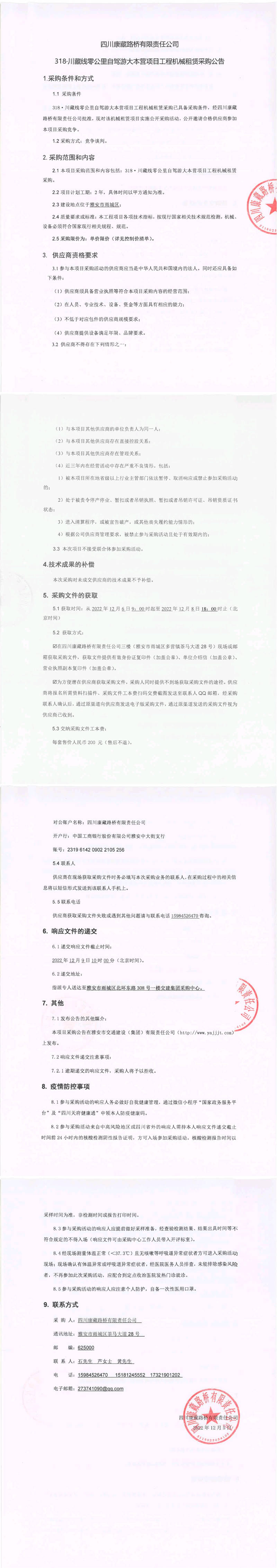 四川康藏路橋有限責(zé)任公司318.川藏線零公里自駕大本營項目工程機械租賃采購公告