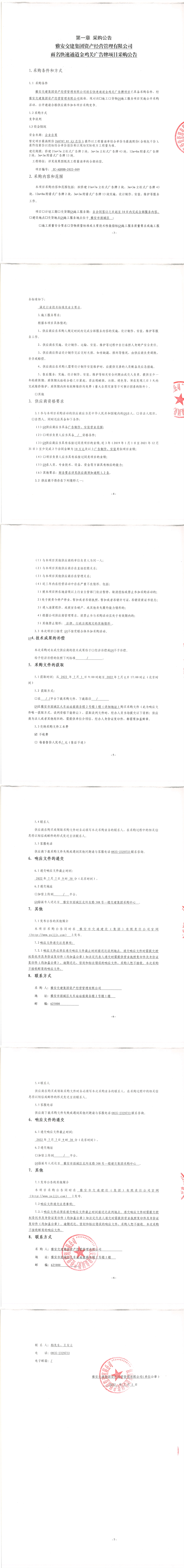 雅安交建集團(tuán)資產(chǎn)經(jīng)營(yíng)管理有限公司雨名快速通道金雞關(guān)廣告牌項(xiàng)目采購(gòu)公告