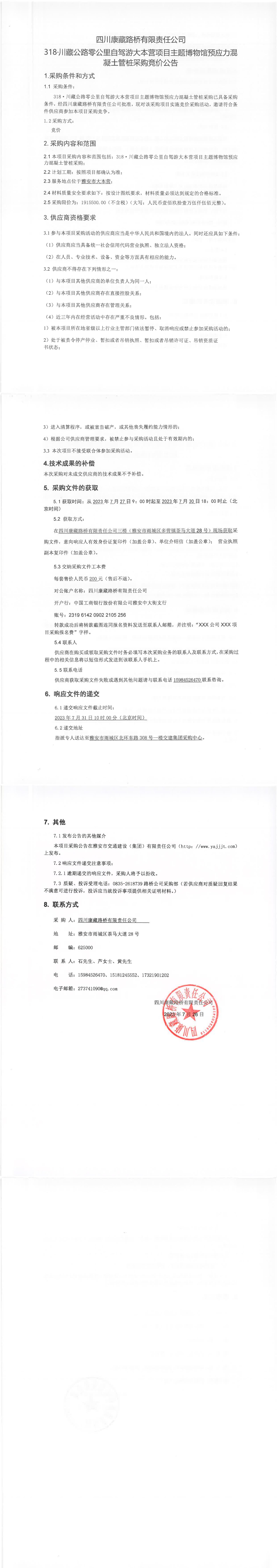 四川康藏路橋有限責任公司318·川藏公路零公里自駕游大本營項目主題博物館預應力混凝土管樁采購競價公告