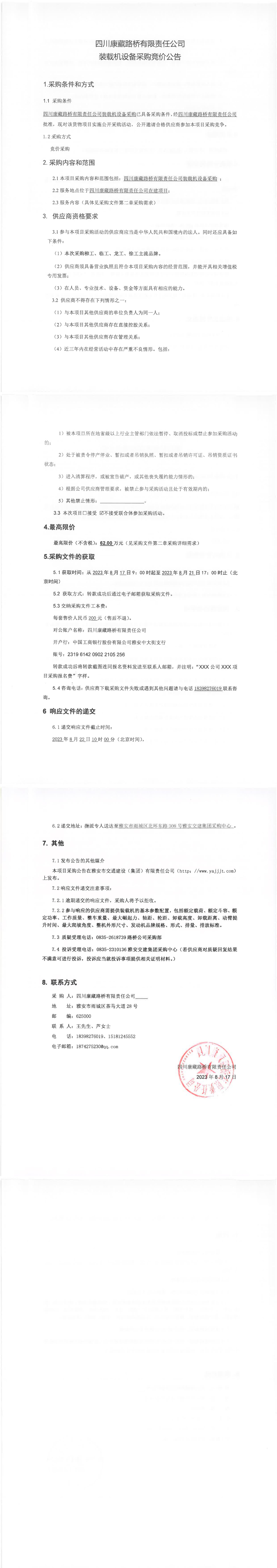 四川康藏路橋有限責(zé)任公司裝載機設(shè)備采購競價公告