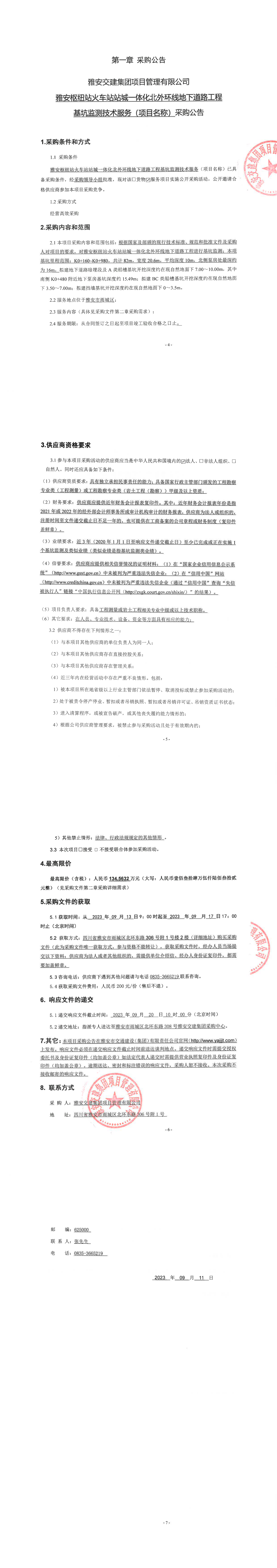 雅安交建集團(tuán)項(xiàng)目管理有限公司雅安樞紐站火車站站城一體化北外環(huán)線地下道路工程基坑監(jiān)測技術(shù)服務(wù)(項(xiàng)目名稱)采購公告