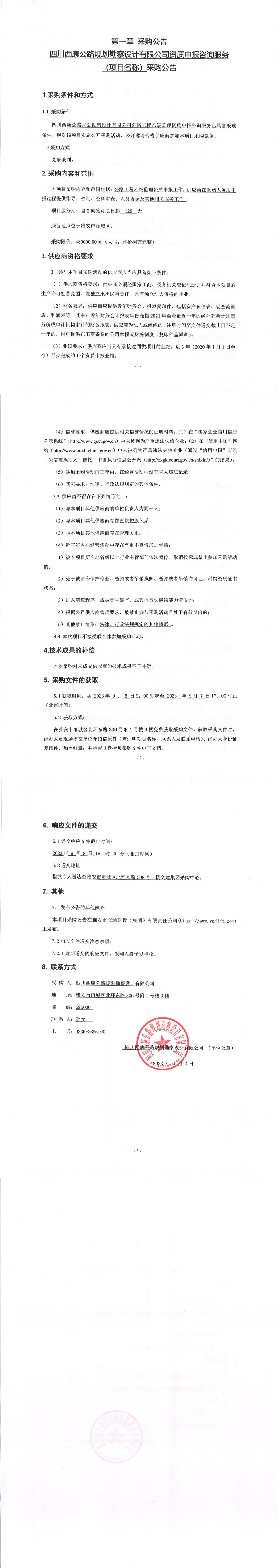四川西康公路規(guī)劃勘察設(shè)計有限公司資質(zhì)申報咨詢服務(wù)(項目名稱)采購公告