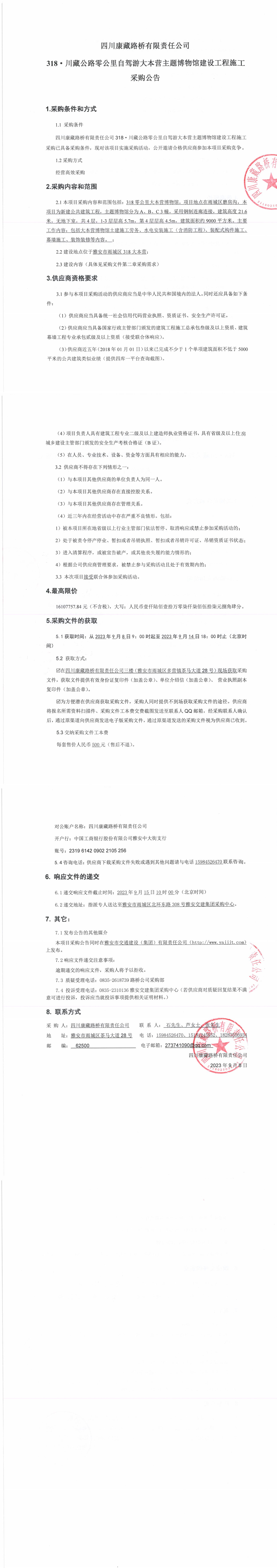 四川康藏路橋有限責任公司318·川藏公路零公里自駕游大本營主題博物館建設(shè)工程施工采購公告