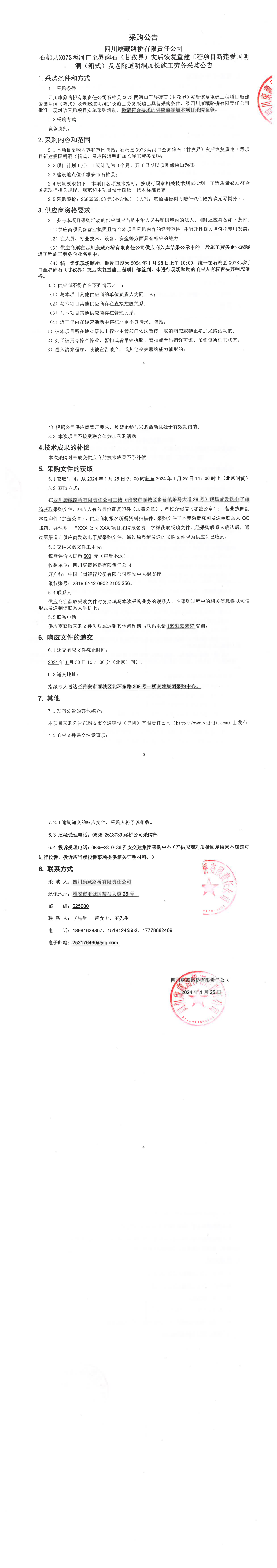 四川康藏路橋有限責(zé)任公司石棉縣X73兩河口至界碑石(甘孜界)災(zāi)后恢復(fù)重建工程項(xiàng)目新建愛國(guó)明洞(箱式)及老隧道明洞加長(zhǎng)施工勞務(wù)采購(gòu)公告