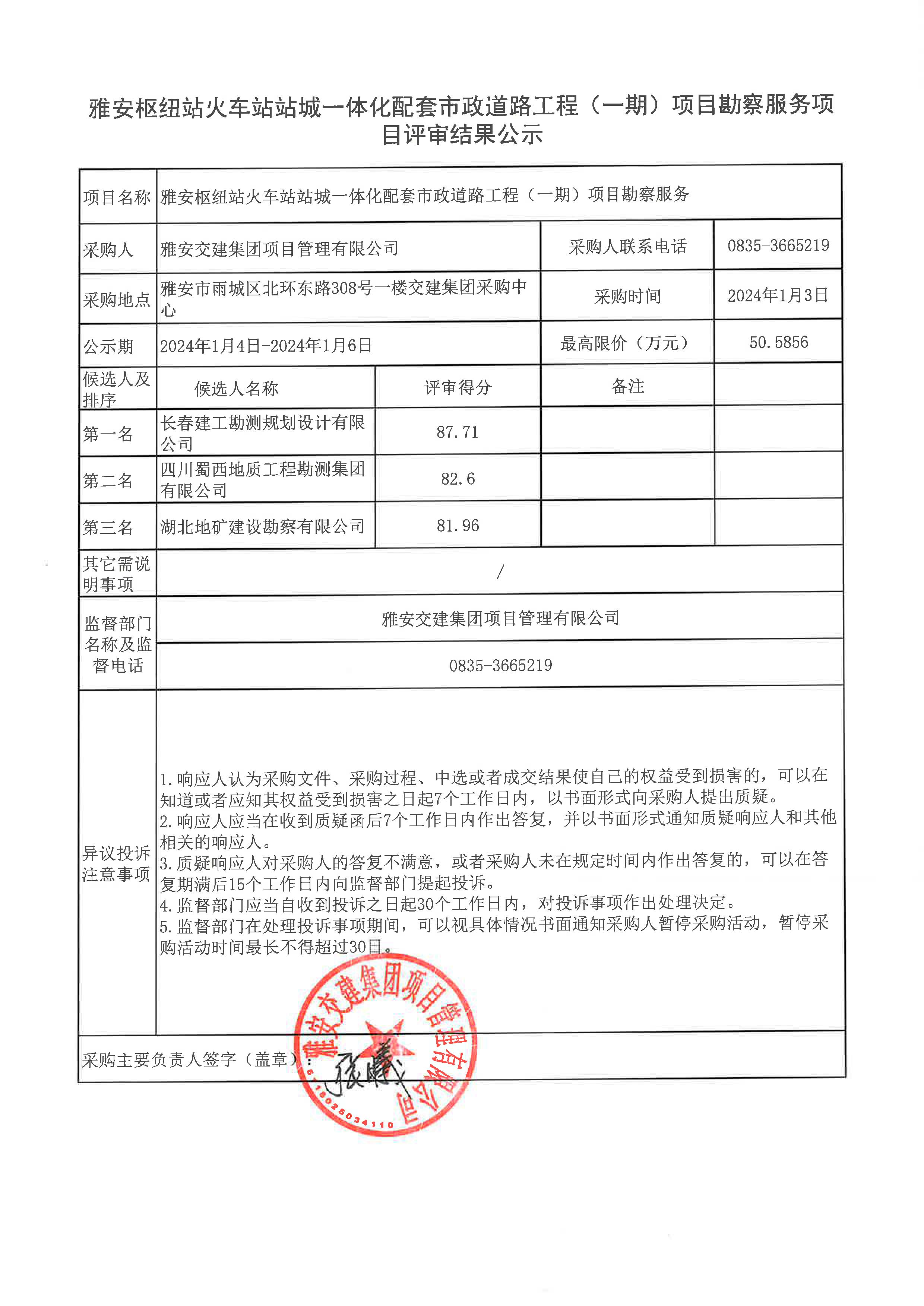 雅安交建集團項目管理有限公司雅安樞紐站火車站站城一體化配套市政道路工程(一期) 項目勘察服務(wù)項目評審結(jié)果公示