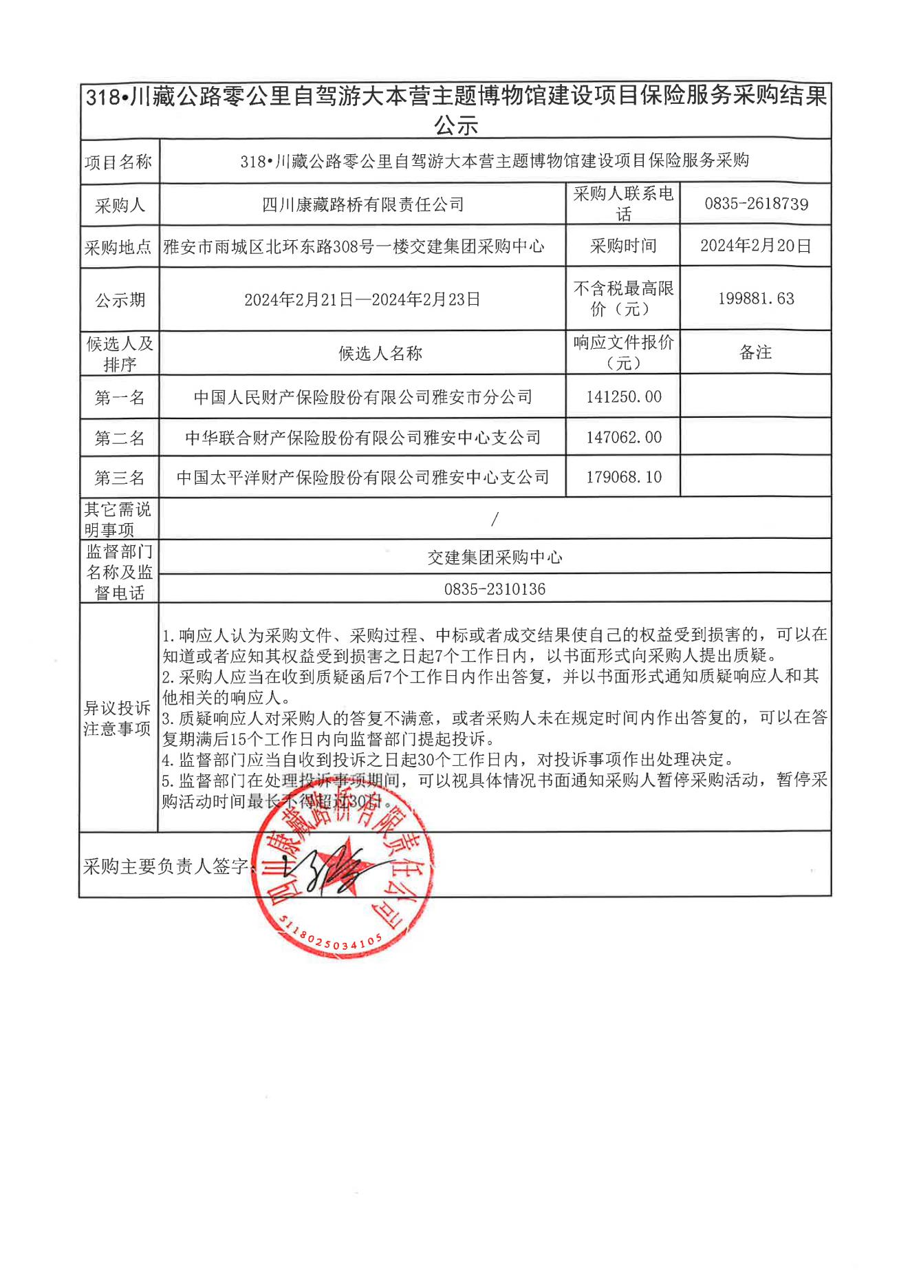 四川康藏路橋有限責(zé)任公司318•川藏公路零公里自駕游大本營主題博物館建設(shè)項目保險服務(wù)采購結(jié)果公示