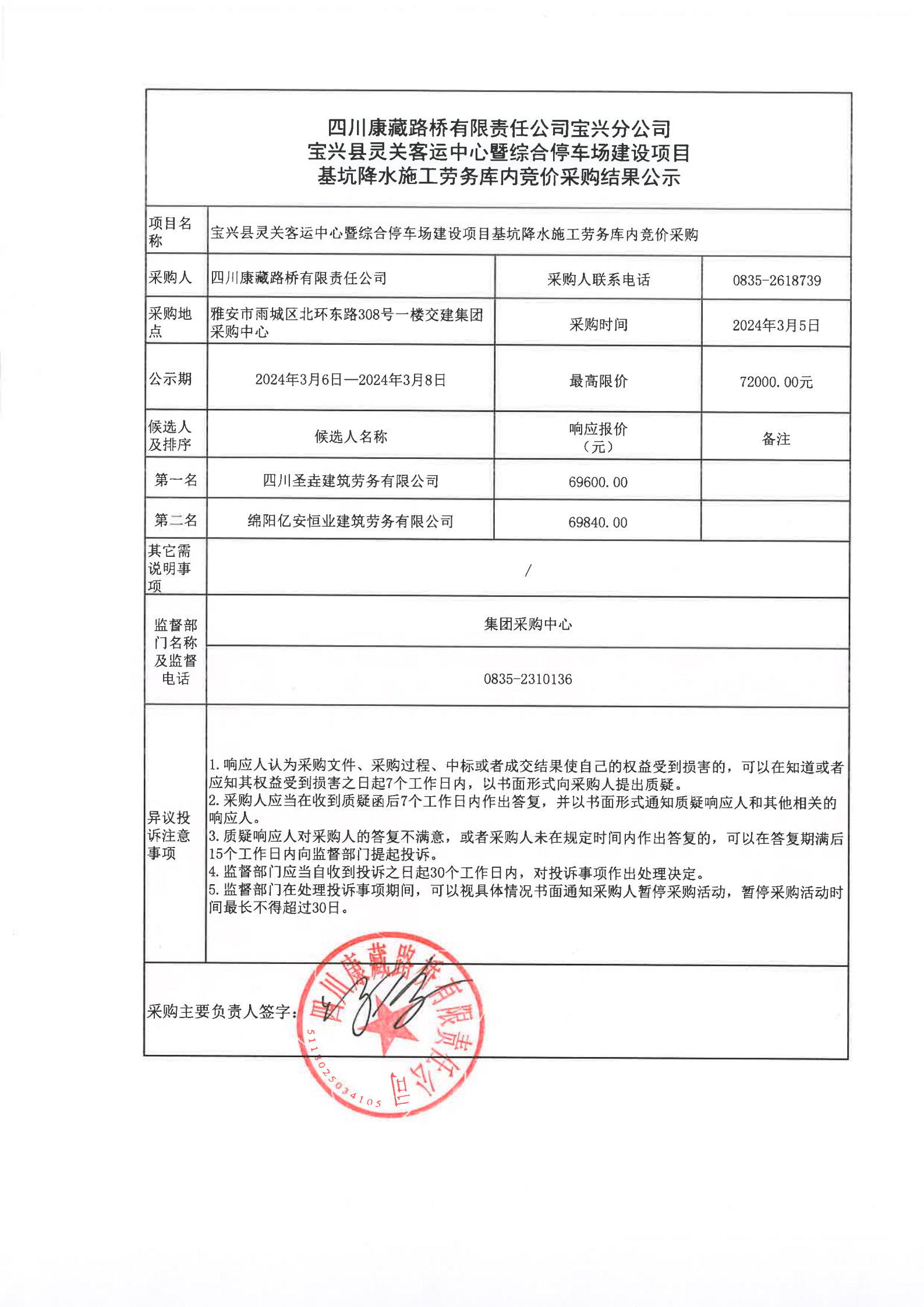 四川康藏路橋有限責(zé)任公司寶興分公司寶興縣靈關(guān)客運(yùn)站中心暨綜合停車場(chǎng)建設(shè)項(xiàng)目基坑降水施工勞務(wù)庫(kù)內(nèi)競(jìng)價(jià)采購(gòu)結(jié)果公示
