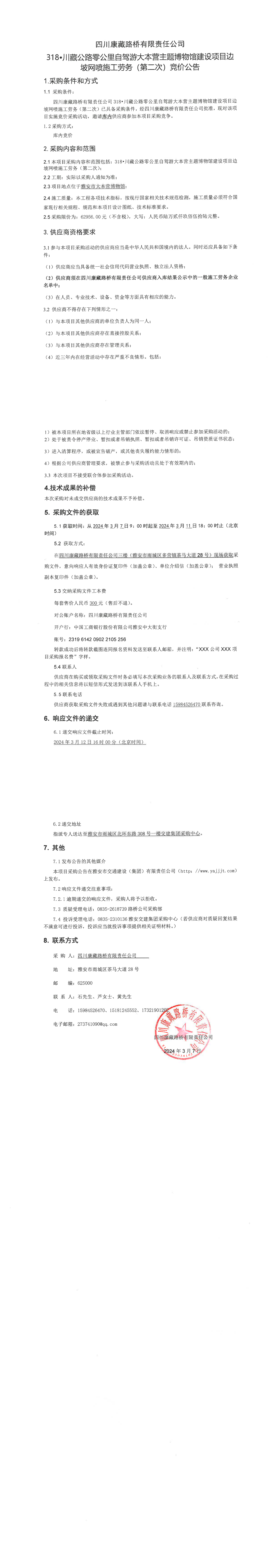 四川康藏路橋有限責(zé)任公司318·川藏公路零公里自駕游大本營(yíng)主題博物館建設(shè)項(xiàng)目邊坡網(wǎng)噴施工勞務(wù)(第二次)競(jìng)價(jià)公告