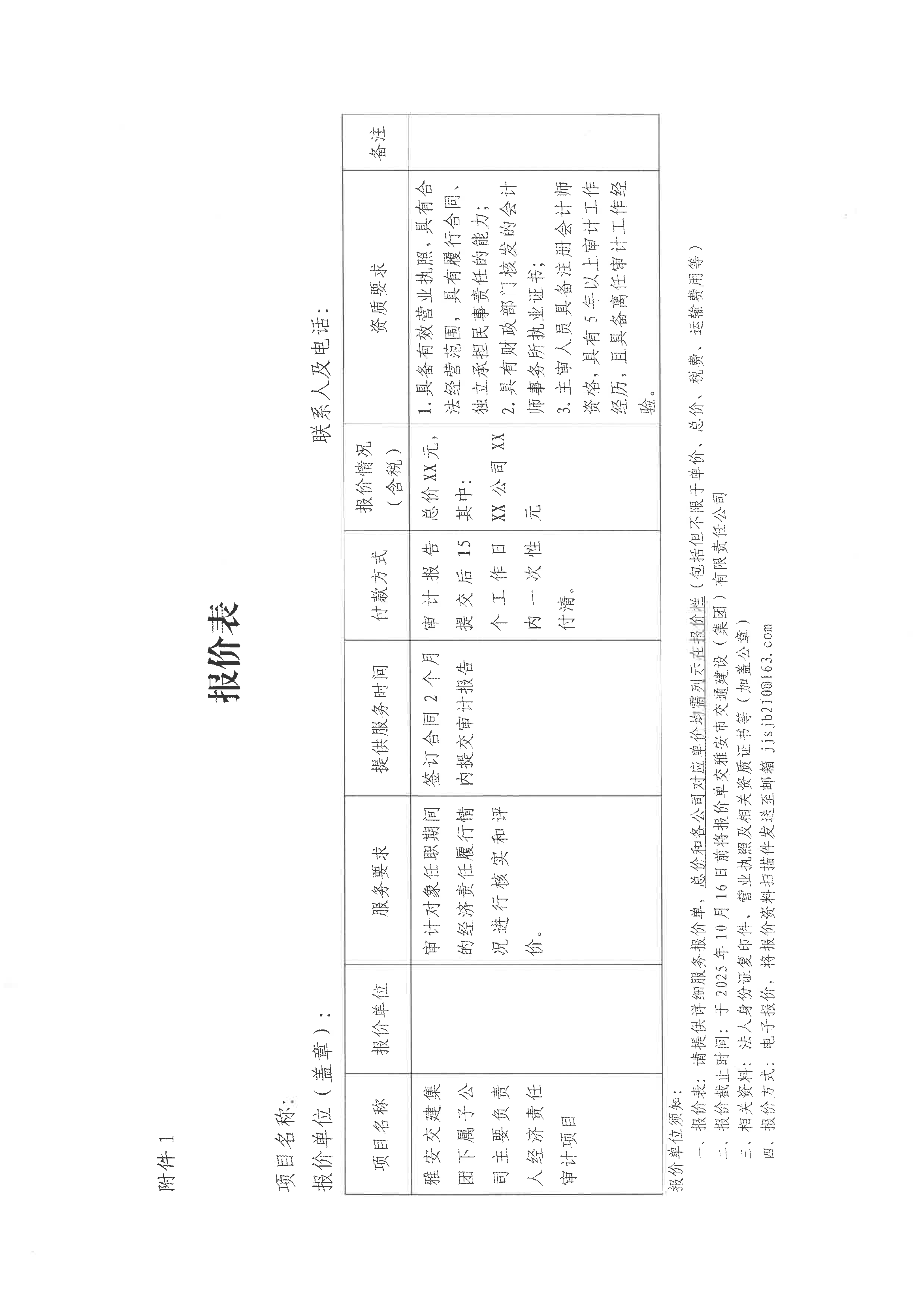 關(guān)于雅安交建集團(tuán)下屬子公司主要負(fù)責(zé)人經(jīng)濟(jì)責(zé)任審計(jì)項(xiàng)目限價(jià)的詢價(jià)函