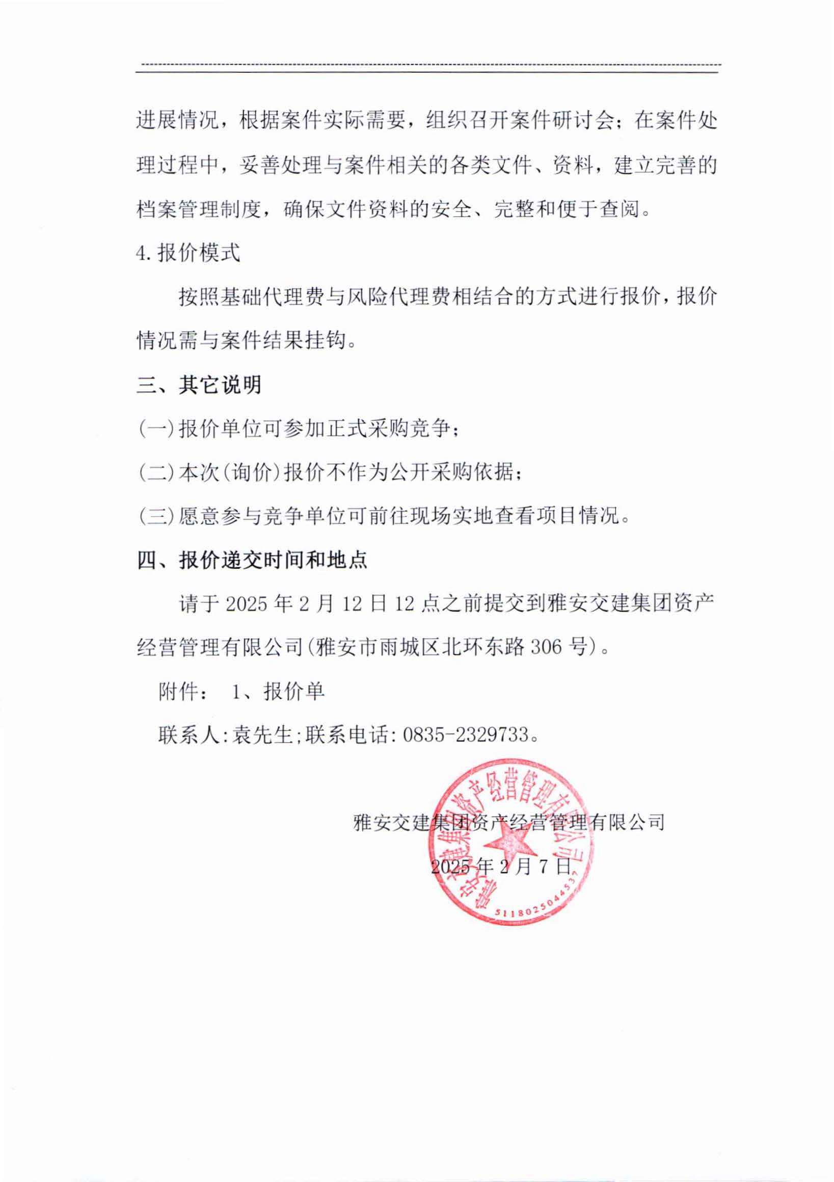 雅安交建集團(tuán)資產(chǎn)經(jīng)營(yíng)管理有限公司成雅高速金雞關(guān)互通及服務(wù)區(qū)項(xiàng)目(雨名快速通道項(xiàng)目)TJ2標(biāo)段訴訟代理服務(wù)項(xiàng)目市場(chǎng)調(diào)查公告
