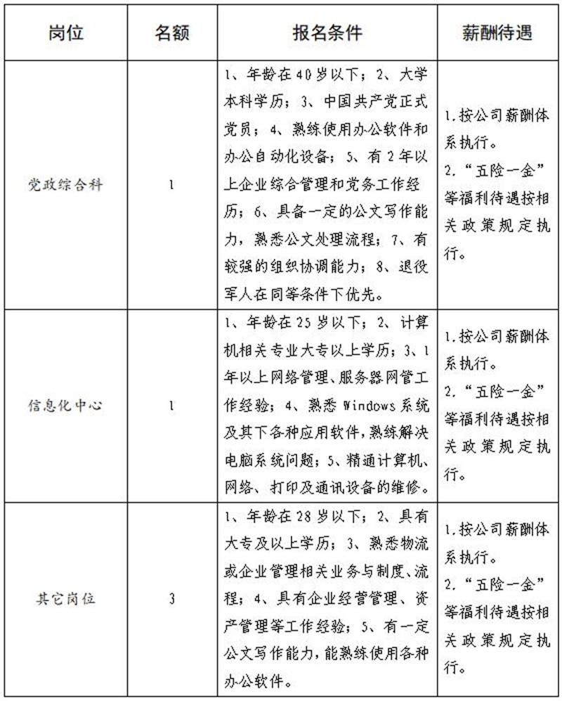 雅安交建集團無水港物流有限責(zé)任公司主要從事雅安市快遞物流分撥、集裝箱掏拼箱作業(yè)、倉儲等業(yè)務(wù),F(xiàn)根據(jù)公司業(yè)務(wù)發(fā)展需要,雨城分公司擬招聘5名工作人員,現(xiàn)將有關(guān)事項公告如下: