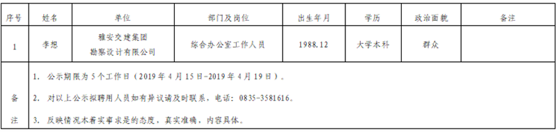 雅安交建集團子公司擬聘用人員公示(勘察設(shè)計公司)