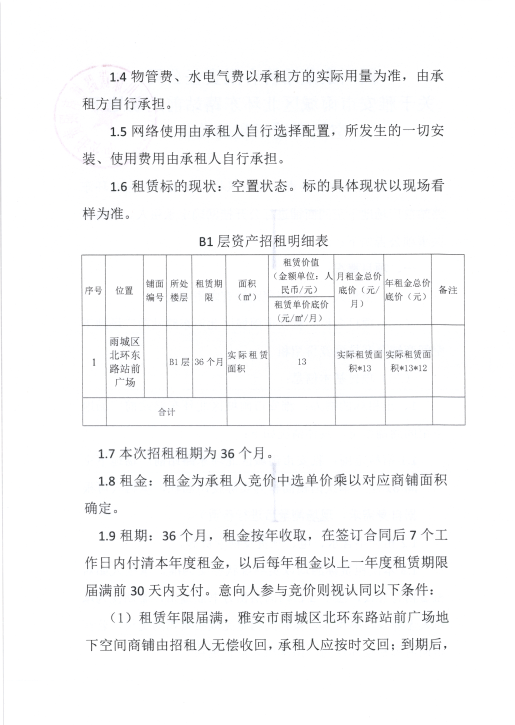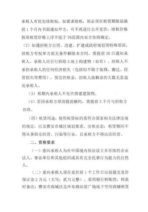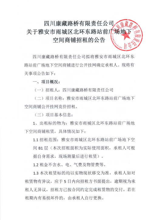 四川康藏路橋有限責任公司關(guān)于雅安市雨城區(qū)北環(huán)東路站前廣場地下空間商鋪招租的公告
