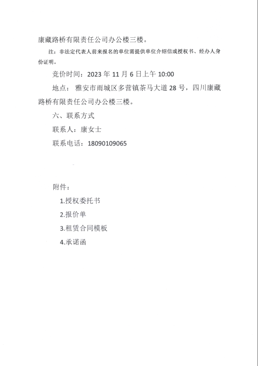 雅安交建資產(chǎn)經(jīng)營管理有限公司雨名快速通道黑碾子場地招租公告