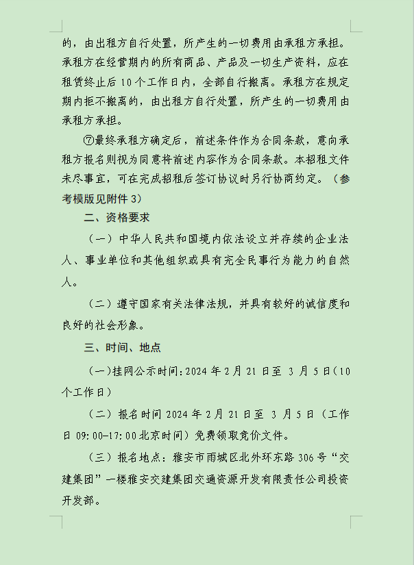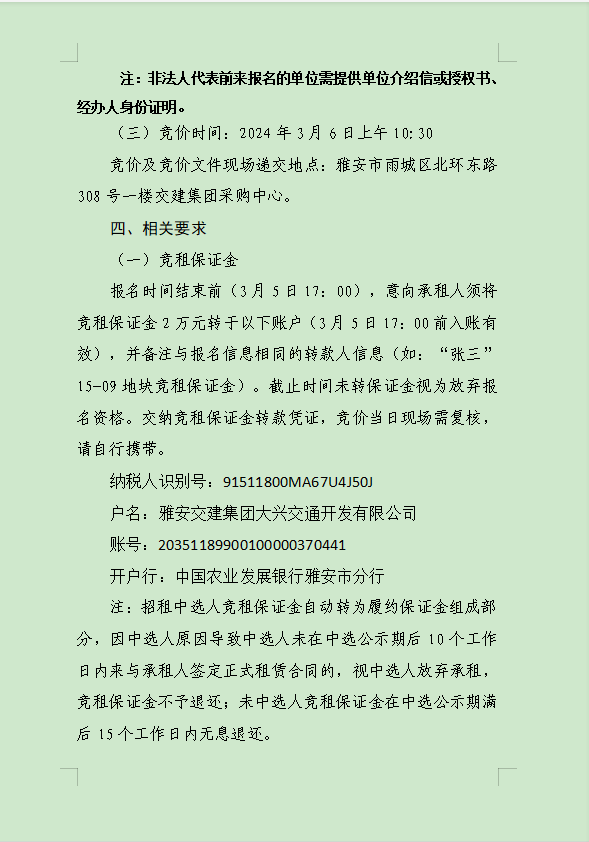 雅安交建集團大興交通資源開發(fā)有限公司關(guān)于雨城區(qū)姚橋片區(qū)15-09地塊2024年競價招租的公告附件