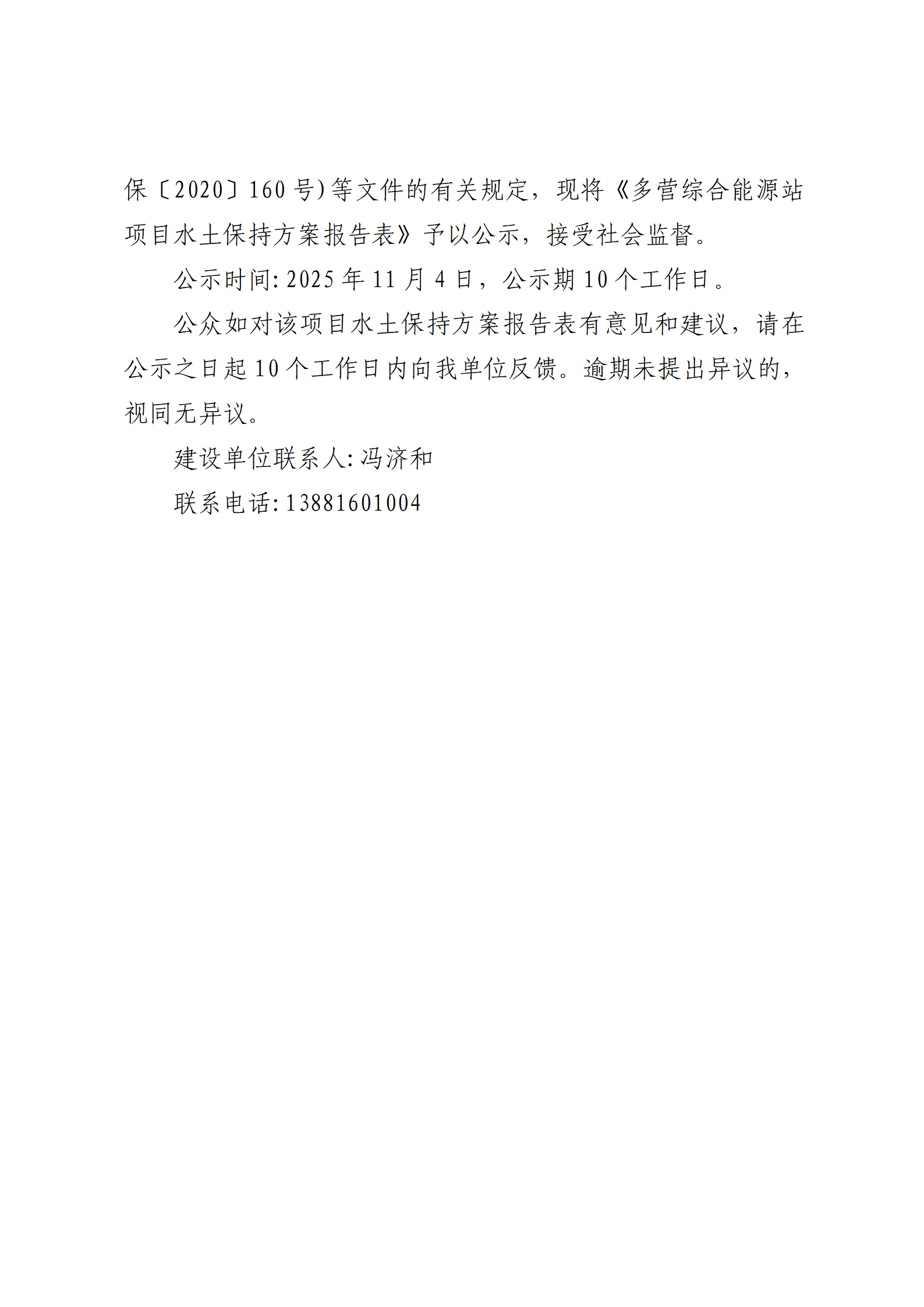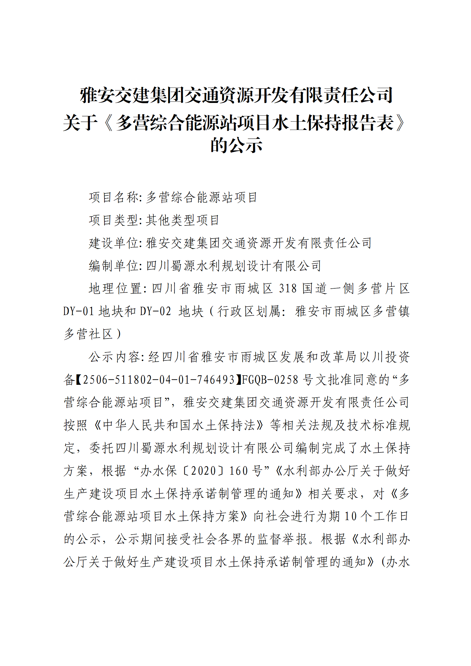 ÑŰ²½»½¨¼¯ˆF(tu¨¢n)½»Í¨ÙYÔ´é_°l(f¨¡)ÓÐÏÞØŸ(z¨¦)Èι«Ë¾ êP(gu¨¡n)ÓÚ¡¶¶à I¾CºÏÄÜÔ´Õ¾í—(xi¨¤ng)ĿˮÍÁ±£³Öˆó¸æ±í¡·µÄ¹«Ê¾