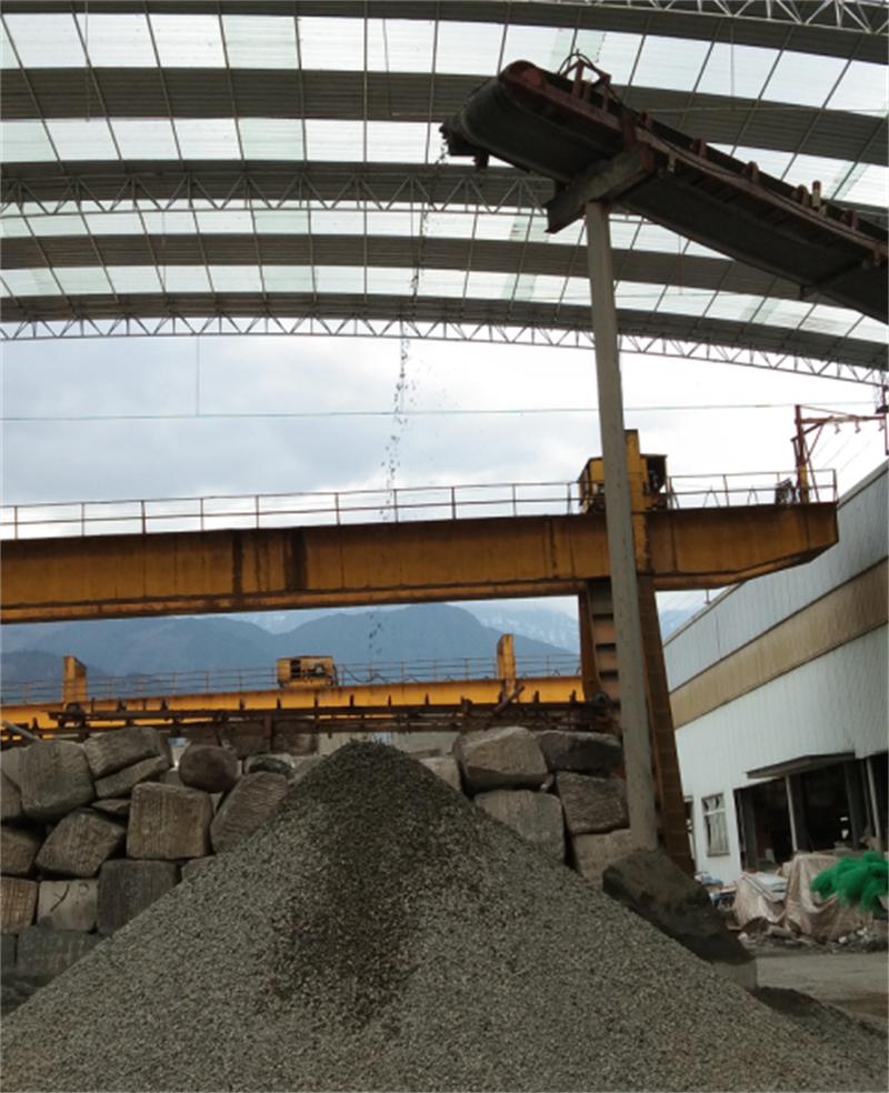 3月14日下午15:00時,第一車施工棄渣從寶興縣靈關(guān)鎮(zhèn)代碑寺施工現(xiàn)場運抵興寶投資公司委托加工合作企業(yè)——寶興縣健迅石材廠。棄渣投入料倉后,經(jīng)過顎破、圓錐破、沖擊破三次破碎后,掉落在地面,這標志著興寶公司與寶興縣健迅石材廠委托加工合作正式啟動。