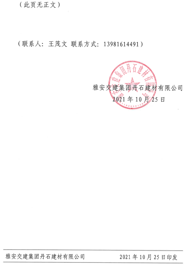 雅安交建集團丹石公司關于調整成品骨料及風化礦石料銷售價格的通知(2021.10.26)