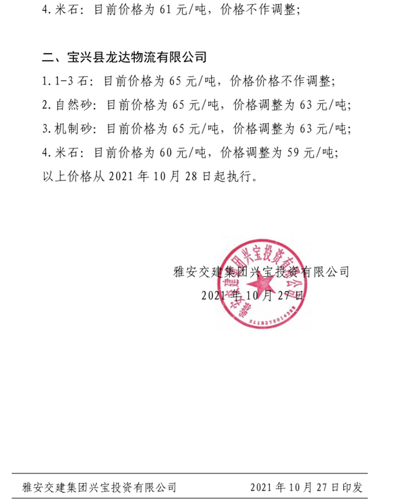 ÑŰ²½»½¨¼¯ˆF(tu¨¢n)ÔÆÊ¯¹«Ë¾êP(gu¨¡n)ÓÚÕ{(di¨¤o)Õû³ÉÆ·ÁÏäNÊÛƒr(ji¨¤)¸ñµÄ֪ͨ£¨2021.11.4£©
